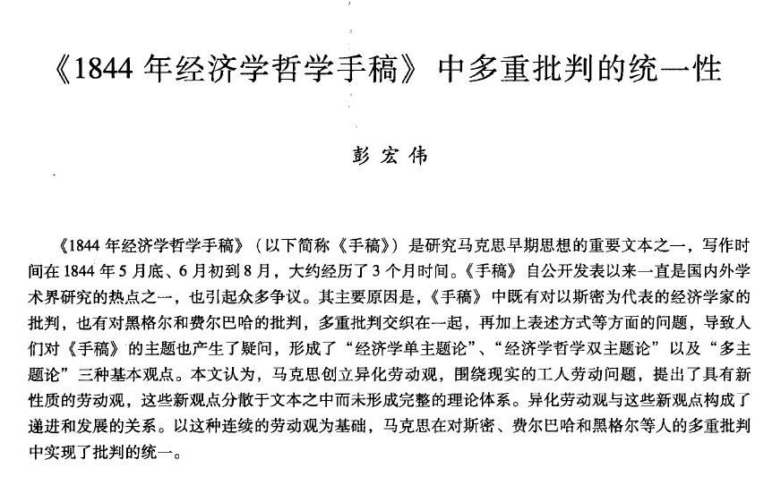 彭宏伟:《1844年经济学哲学手稿》中多重批判的统一性