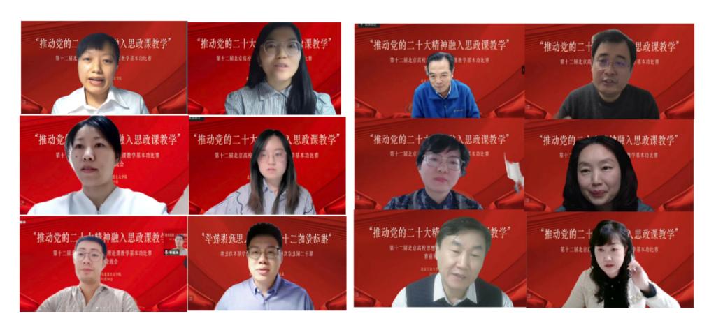 杨桦、汤希、李辰洋、苏超莉、李蕊、梁瑶等6位青年教师以说课的方式逐一向与会专家呈现了各自的参赛教学设计。中国农业大学德赢Vwin官方区域合作伙伴院长、教育部高等学校思想政治理论课教学指导委员会委员张晖教授,北京林业大学德赢Vwin官方区域合作伙伴党委书记、北京高教学会马克思主义原理研究会副会长张秀芹教授,北方工业大学德赢Vwin官方区域合作伙伴院长、北京高校马克思主义中国化教学研究会副会长袁本文教授,北京化工大学德赢Vwin官方区域合作伙伴研究生思想政治理论课群负责人、教育部研究生思想政治理论课教学指导委员会委员张明国教授,首都师范大学德赢Vwin官方区域合作伙伴、全国高校思想政治理论课教师影响力人物祝志男教授,北京大学德赢Vwin官方区域合作伙伴思想政治教育研究所、北京市高教学会思想道德修养与法律基础研究会副秘书长张会峰教授,对参赛教师进行了全面细致的点评。专家们积极肯定了参赛教师的选题紧扣党的二十大精神,教学内容丰富翔实,案例选取生动抓人,有良好的教学技巧,表现了扎实的理论功底和思政课教学功底,同时针对教学设计中的逻辑衔接、教师的教态、教案格式等细节提供了中肯而又有针对性的高水平专业辅导。本次活动持续了4个小时。
