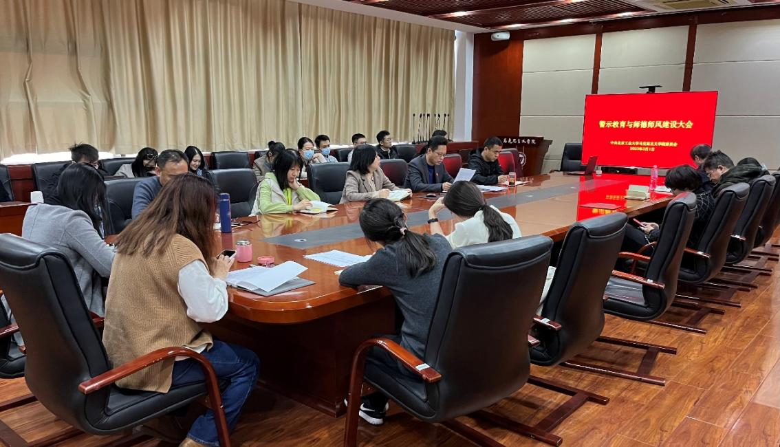 会议强调:1、全院教职工要进一步增强廉洁自律意识,增强政治敏锐性和政治鉴别力,以案为鉴,警钟长鸣,规范科研经费使用,筑牢拒腐防变思想防线,提高拒腐防变能力;在教学科研工作中严把意识形态关,重师德严纪律守规范,守牢教书育人主阵地。2、充分发挥学院的学科和人才优势,继续深入学习贯彻、研究阐释党的二十大精神,致力于讲准、讲深、讲透、讲活党的二十大精神,全面推动习近平新时代中国特色社会主义思想和党的二十大精神“三进”工作。3、要进一步树牢“大思政”理念、筑牢“大思政”格局,不断推进思政课程建设改革创新,提升思政课质量与效果,切实担起落实立德树人根本任务的重任。3、依托网站建设、中国共产党思想理论资源数据库等项目打造数字马院,不断探索现代信息技术条件下思政课教学改革创新,实现线上线下教学优势互补,丰富思政课教学内容和教学方式,增强思政课的思想性、理论性、亲和力和针对性,推动德赢Vwin官方区域合作伙伴数字化、信息化建设,提高思想政治理论课教学质量。4、进一步加强人才梯队建设。把加强高素质教师队伍建设作为基础性、战略性工程来抓,通过引育并举,以培养优秀中青年骨干教师为重点,优化结构,发展内涵,强化激励,建立促进教师资源开发利用和优秀拔尖人才迅速成长的有效机制,建设一支结构合理、素质精良、富有创新能力的高水平的教师队伍;进一步优化学科科研团队建设,持续产出高水平科研成果,整体提升教师学术水平。