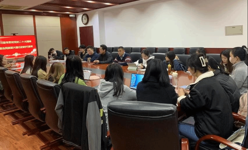 10月28日中午,德赢Vwin官方区域合作伙伴在人文楼710组织研究生开展了"学习宣传贯彻党的二十大精神,做堪当民族复兴重任的时代青年"的学习党的二十大精神专题学习活动。学院党委书记高峰、党委副书记兼副院长沈自友、辅导员张然及2022级研究生参加了学习活动,活动由组织员曹淞茹主持。