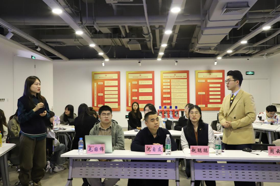 宣讲活动结束后,学院宣讲团成员就宣讲的主题、宣讲内容的准备及宣讲技巧等方面进行沟通交流,讨论热烈而充分,赵聪聪和沈自友分别进行了点评。