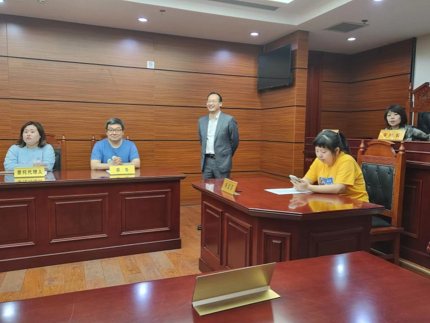 最后,律所组织了一场模拟法庭活动,模拟真实法庭现场。从观众中随机选出10名成员,分别扮演法官、审判长、书记员、原告、被告、原被告代理人等,按照律所提供的剧本模拟一场真实法院审判现场。这一活动使大家身临其境,并对法院审判程序、法庭各人员职责有了清楚理解。大家收货满满,对相关法律知识也有了更深刻的理解,在今后的生活中能更好的利用法律武器保护自己。(撰稿人:刘欢)