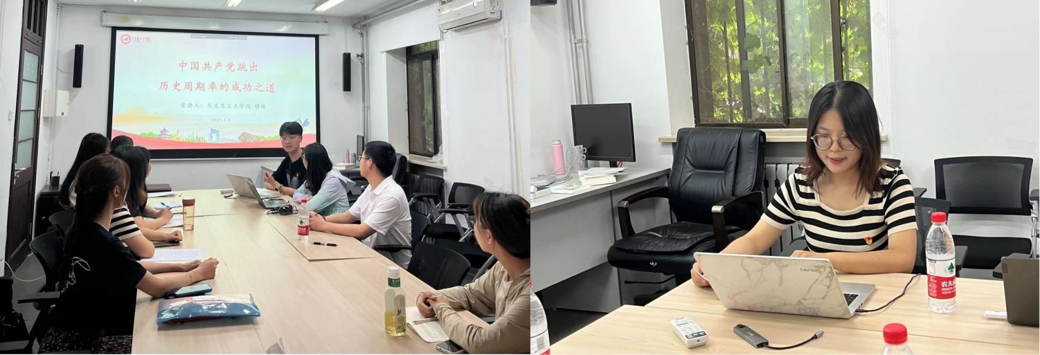 参观完展板后,大家在善斋进行理论宣讲环节。首先,德赢Vwin官方区域合作伙伴2021级硕士研究生胡强作题为《中国共产党跳出历史周期率的成功之道》的宣讲。“我们党历史这么长、规模这么大、执政这么久,成功跳出治乱兴衰的历史周期率的背后有哪些成功之道呢?”胡强讲师以此问题为切入点,为大家讲述了赓续红色血脉——让人民当家作主,监督政府;全面从严治党——敢于直面问题,勇于自我革命;践行根本宗旨——走群众路线,为人民服务,这跳出历史周期率的成功之道。德赢Vwin官方区域合作伙伴2021级硕士研究生杨璟作题为《以青春之我融入青春之国家》的宣讲。杨璟讲师从个人成长与国家发展紧密相连;祖国强盛离不开无数青春接续奋斗;做有理想、敢担当、能吃苦、肯奋斗的新时代好青年三个方面,激励大家以青春之我融入青春之国家。