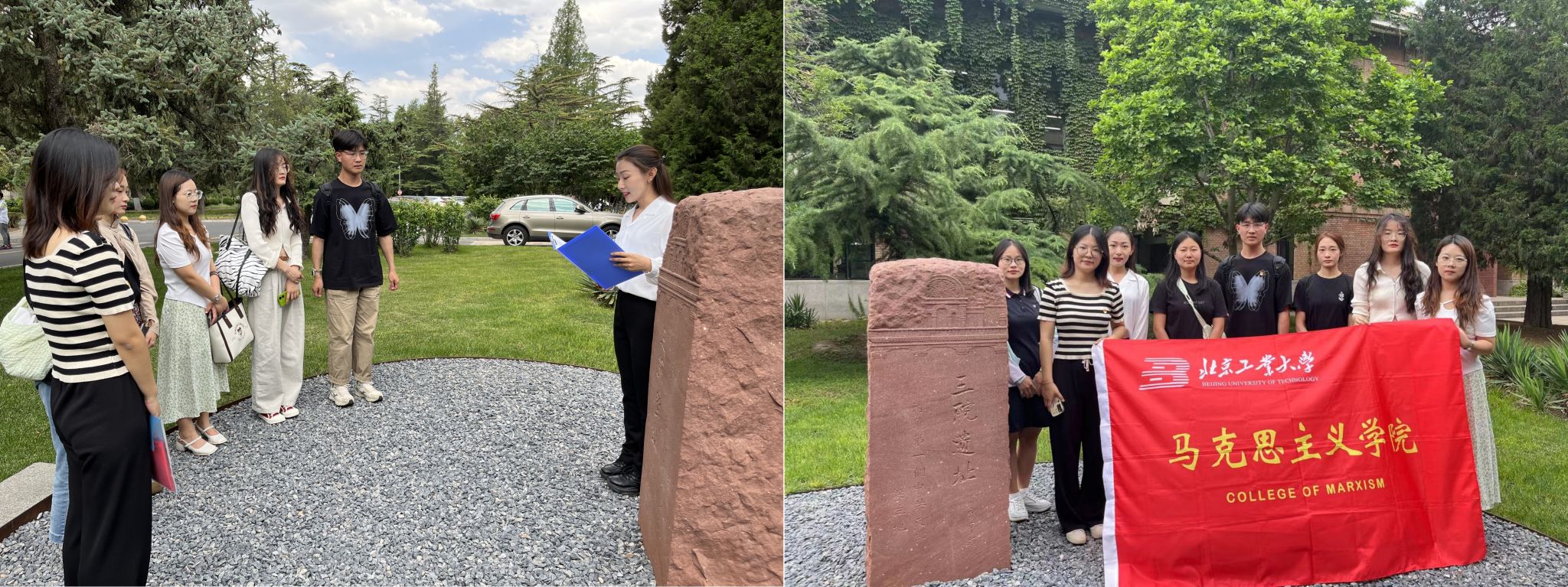 活动伊始,清华大学博士宣讲团讲师陪同北工大马院宣讲团在三院遗址进行现场宣讲,三院见证了清华第一个中共党支部的成立,见证了轰轰烈烈的“一二·九”爱国运动,见证了清华人为民族解放、人民幸福而追求真理、英勇斗争的光辉历程。清华大学博士宣讲团讲师带着我们一起回顾了党组织发展路程上的风风雨雨,追忆了大师前辈们的点点滴滴,激励我们更当不畏艰险,砥砺前行。