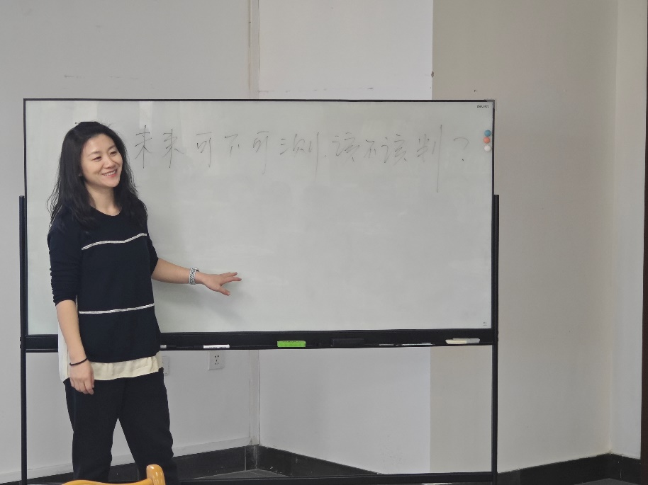 常婧老师以“未来可不可测,该不该判”为切入点开展本次主题班会的讨论,在同学们充分讨论的基础上进行总结指导。根据量子力学的“测不准原理”即不确定性原理对人文社会科学的启示,常老师勉励大家缓解未来焦虑,脚踏实地立足眼前、活在当下,将所学理论知识与实际相结合,从现实中总结和抽象出问题,再用理论去指导和前瞻实践。在研究中牢记“文章是有使命的”,坚持“把事干成事业”。